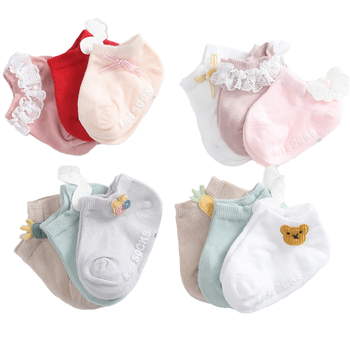 Calcetines con estampado floral para niñas recién nacidas, 3 pares de calcetines transpirables de punto de algodón estambre, cobertura de tobillo de verano, tipo de vestido para primavera