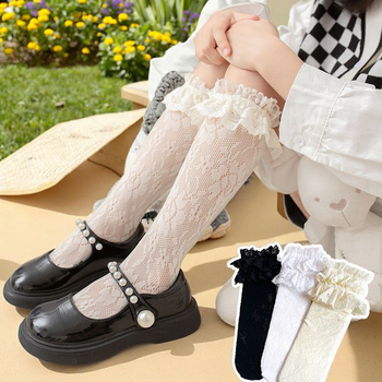 Nuevos calcetines de princesa para Niñas para niños, calcetines informales de punto blancos finos de verano, calcetines de encaje