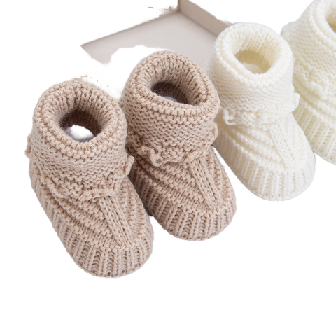 Botines de bebé de punto de algodón de alta calidad Unisex medias de invierno recién nacido 0-12M venta al por mayor lindo equipo de dibujos animados blanco Beige primavera