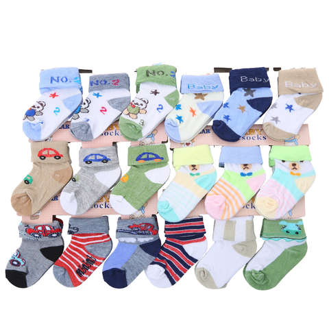 Calcetines casuales de algodón a rayas de dibujos animados para niños, calcetines de punto para recién nacidos con boca suelta en estilos mixtos al por mayor